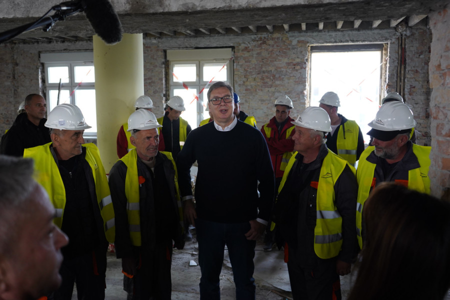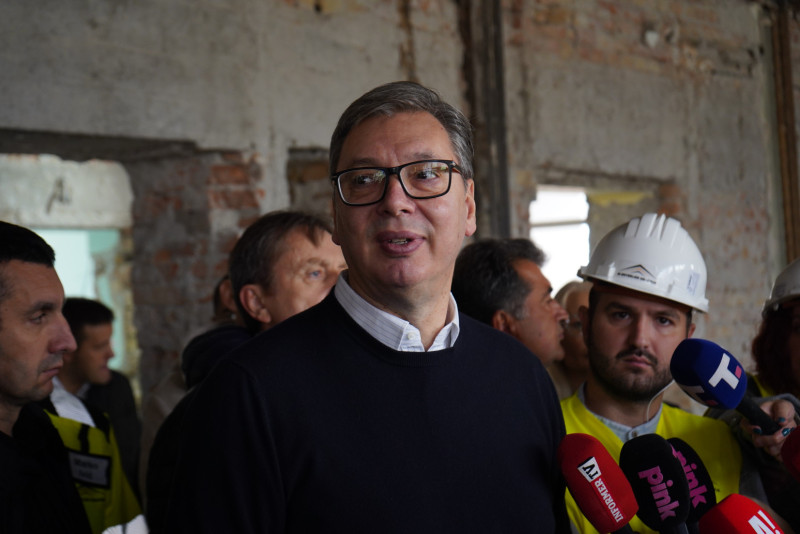 Predsednik Srbije Aleksandar Vučić obilazi radove na sanaciji i adaptaciji Klinike za ginekologiju i akušerstvo Kliničkog centra Srbije, u Višegradskoj ulici.