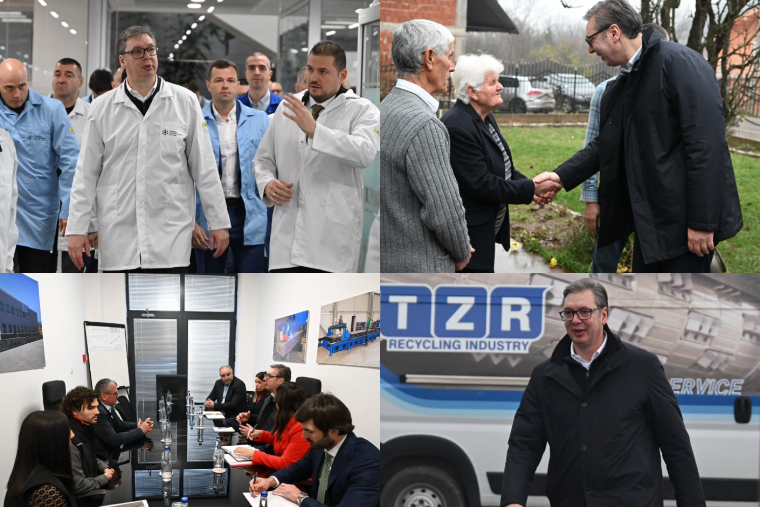 Predsednik Srbije Aleksandar Vučić započeo je obilazak kompanije za proizvodnju sklopova i delova mašina za reciklažu TZR Recycling Industry.