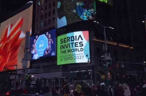 Reklama za EXPO Beograd 2027 pojavila se na Tajms skveru u Njujorku.