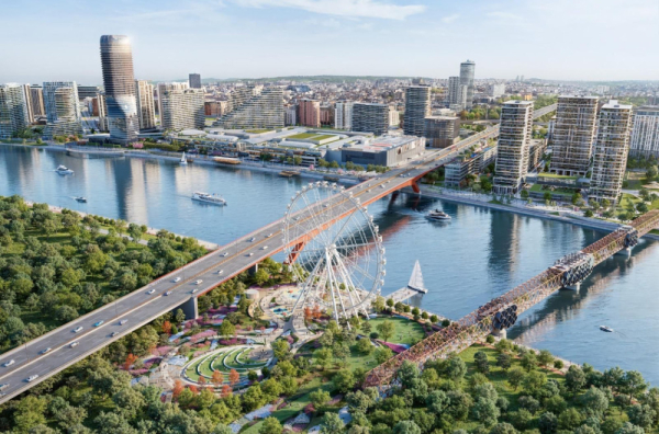 On je pojasnio da će na novobeogradskoj obali Save, između Starog železničkog mosta koji će biti transformisan u pešački i mosta „Gazela“, biti izgrađen 80 metara visok panoramski točak "Belgrade Eye“.
