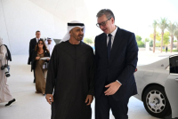 Predsednik Aleksandar Vučić izjavio je da je razgovarao predsednikom UAE šeikom Muhamedom bin Zajedom al Nahjanom o saradnji i svim pitanjima od značaja za našu zemlju i najavio da će do maja biti otvorena nova direktna avio-linija Beograd-Abu Dabi.