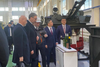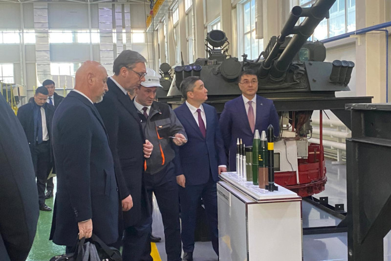 Predsednik Republike Srbije Aleksandar Vučić obišao je vojnu izložbu u okviru fabrike Besqaru u društvu predsednika Vlade Republike Kazahstan Olžasa Bektenova.
