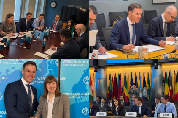 Dodao je da se sastao i sa potpredsednicom Svetske banke za Evropu i Centralnu Aziju Antonelom Basani, kao i da je imao priliku i da se obrati na sastanku Konstituence Švajcarske, čiji je Srbija deo.