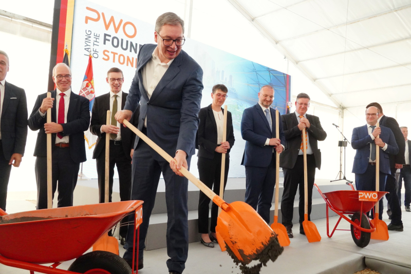 Predsednik Srbije Aleksandar Vučić prisustvovao je svečanoj ceremoniji polaganja kamena temeljca za izgradnju nove fabrike kompanije PWO Group u Čačku.