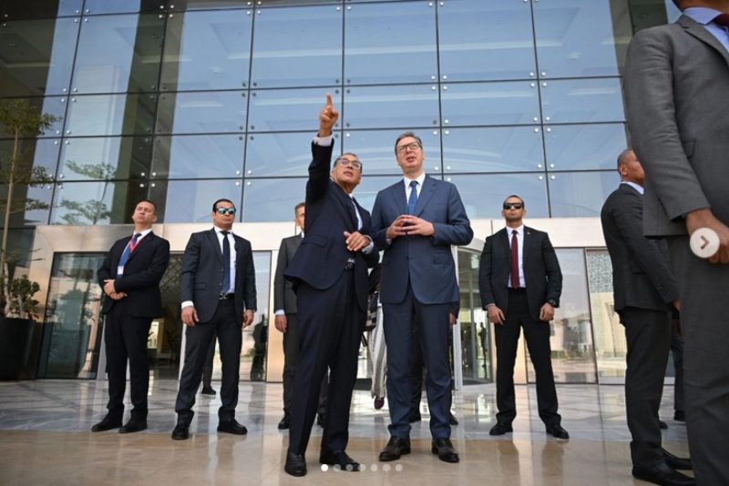 "Odličan sastanak sa premijerom Egipta Madbulijem u novoj administrativnoj prestonici Egipta, koja svojim opsegom i strukturom nadmašuje brojne velike investicione i građevinske poduhvate u svetu. Istakao sam da je ovakav kapitalni projekat ujedno i pokazatelj ekonomske moći i vizije jedne države i podsetio da je i projekat Beograd na vodi na sličan način promenio lice našeg glavnog grada. Sumirali smo juče potpisane sporazume i razgovarali o novim projektima na kojima bi Srbija i Egipat mogli da sarađuju. Posebno sam naglasio značaj intenzivnih kontakata na nivou ministarstava i poslovnih udruženja, čime će se stvoriti još povoljniji uslovi za razmenu od obostranog interesa", napisao je Vučić.