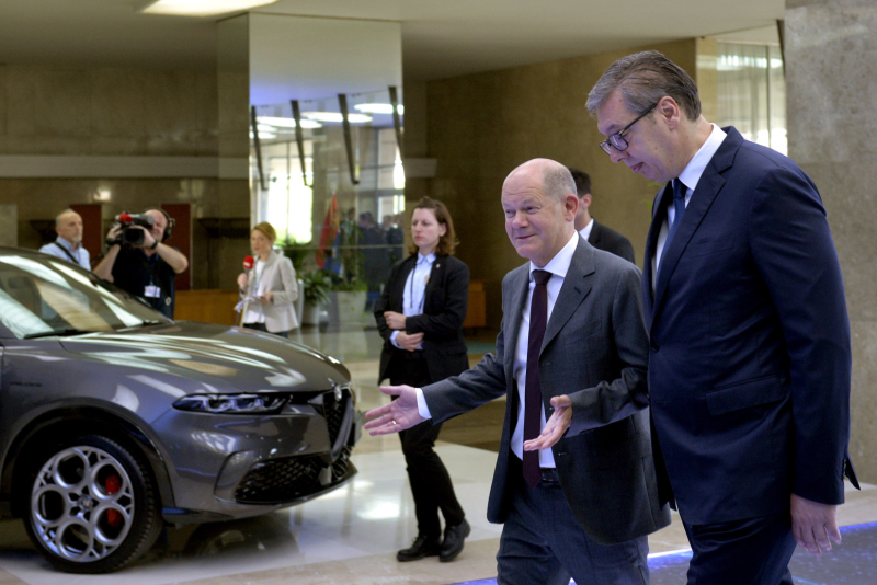 Nemačkog kancelara Šolca sinoć je na aerodromu "Nikola Tesla" u Beogradu dočekao predsednik Vučić, koji je naveo da tokom današnjih razgovora očekuje dogovore koji će predstavljati prekretnicu za Srbiju na njenom putu još bržeg ekonomskog rasta.