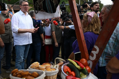 Predsednik Republike Srbije Aleksandar Vučić posetio je danas manifestaciju "Dani proje i sira" u Medveđici i obišao štandove na sajmu.