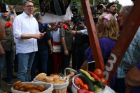 Vučić je, u pratnji predsednika opštine Žagubica Safeta Pavlovića, posetio štandove sira, meda, proje i drugih proizvoda koji su meštani izložili.