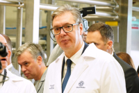 Predsednik Srbije Aleksandar Vučić prisustvovao je u Aranđelovcu svečanom otvaranju novog proizvodnog pogona za proizvode u PET ambalaži i limenkama kompanije "Knjaz Miloš".