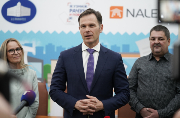 Ministar finansija Siniša Mali i direktor Republičke direkcije za imovinu Jovan Vorkapić potpisali su danas ugovore sa dobitnicima stanova u nagradnoj igri Uzmi račun i pobedi.