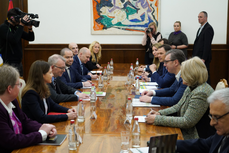 "Sastanak predsednika Republike Srbije Aleksandra Vučića sa Misijom Međunarodnog monetarnog fonda koju predvodi Donal Mekgetigan. MMF sutra završava treće razmatranje rezultata u okviru Stand-By aranžmana (SBA) koji je Republika Srbija sklopila sa tom finansijskom institucijom", napisao je Mali.