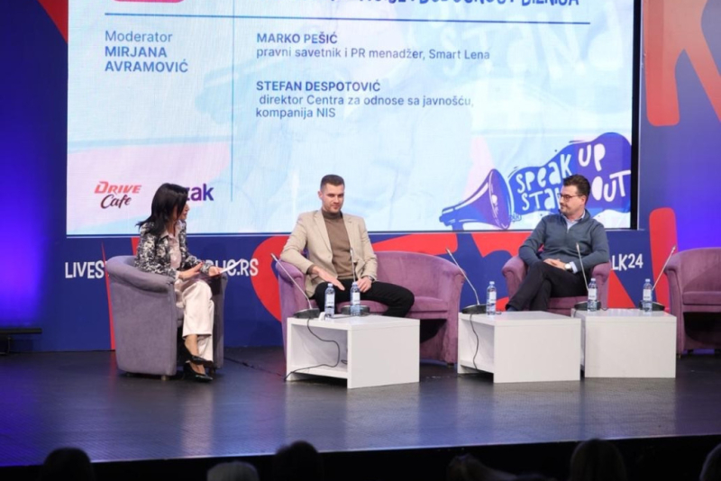 Na panelu su učestvovali Stefan Despotović, direktor Centra za odnose sa javnošću u kompaniji NIS i Marko Pešić, PR menadžer startap-a "Smart Lena".