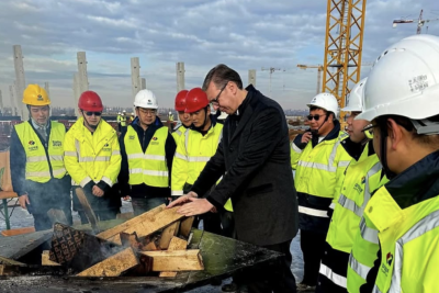 "Ponosan na Srbiju koja radi i koja se gradi! P.S. Radnicima, uglavnom kineskim, Siniša Mali i ja smo doneli nešto da pojedu. Siniša je kupio vruće girice, a ja jabuke. Rezultat je bio nedvosmislen, girica više nema. Tek toliko da znam šta sledeći put da kupim...", napisao je predsednik na svom Instagram nalogu.