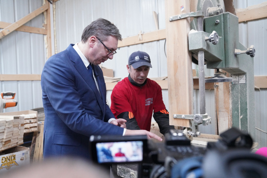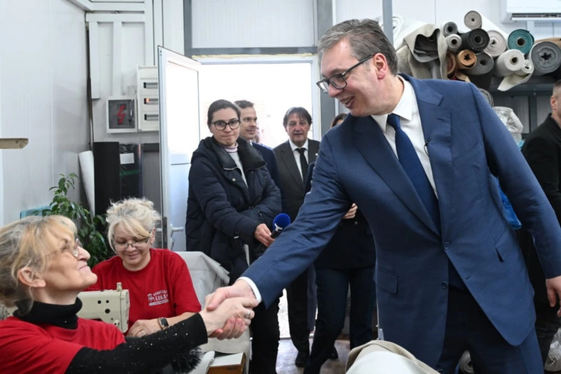 Predsednik Srbije Aleksandar Vučić nastavio je posetu Rasinskom okrugu obilaskom porodične fabrike nameštaja "Lika" koja se pretežno bavi proizvodnjom i tapaciranjem stolica.