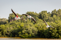 Flamingosi su se relativno nedavno naselili u provinciji Ferara, između Venecije i Ravene, i to na poljima na kojima se gaji pirinač za rižoto.