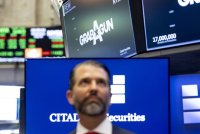 Nakon što je simbolično zazvonio zvono na berzi i poveo skandiranje "USA! USA!", Tramp Džunior je gledao kako deonice GrabAGun-a tonu.