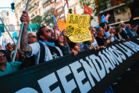 Na protestu koji su podržali sindikati u glavnom gradu Argentine i šire, demonstranti su nosili transparente sa natpisima ''Odbranite državne univerzitete“, ''Studiranje je pravo“ i ''Gore budžet, dole Milejev plan“.
