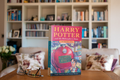 Primerak knjige "Hari Poter i kamen mudraca" autora J.K. Rouling, retko prvo izdanje koje spada u 500 štampanih 1997. godine, prodata je za 45.000 funti u Edinburgu, gde je i napisan veći deo knjige.