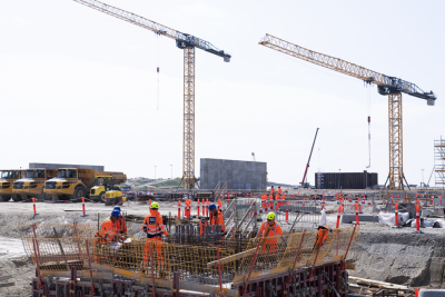 Osim toga, roboti firme DMC-Wire omogućiće više od 70% ovih spojeva, a magnetska dizalica koja može da podigne do pet tona čelika spustiće ove šipke na morsko dno. Roboti će ih spojiti i ojačati betonske module.