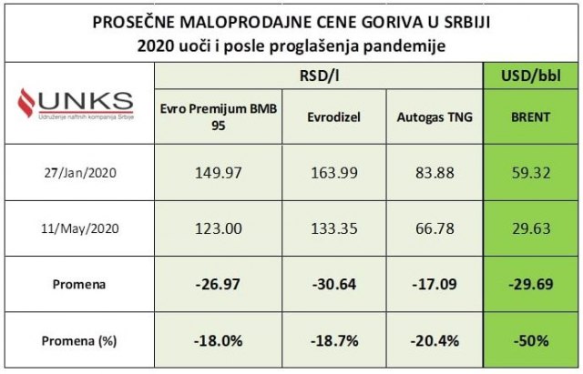 U januaru prošle godine cena benzina bila je 149,97 dinara, evrodizela 163,99, auto-gasa 83,88 dinara za litar. Nakon toga, do maja 2020, gorivo je pojeftinilo oko 30 dinara. Da se zaključiti da se sada, dakle, polako približavamo vrednostima s početka prošle godine.
