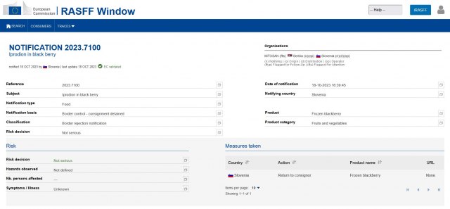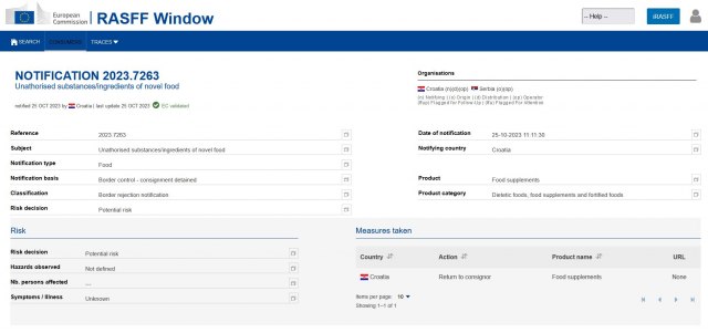 Sistem Evropske unije za brzo obaveštavanje o bezbednosti hrane (RASFF) objavio je da su zaustavljene dve pošiljke iz Srbije.