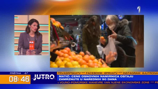 "Cene osnovnih životnih namirnica ostaju nepromenjene u narednih 90 dana, počev od 8. febuara. Iste namirnice kao i ranije obuhvacehene su ovom uredbom vlade - brašno, ulje, mleko, svinjski but. Nije bilo dodavanja novih namirnica, smatramo da se ova uredba pokazala kao jako dobra", rekla je Matić za televiziju Prva.