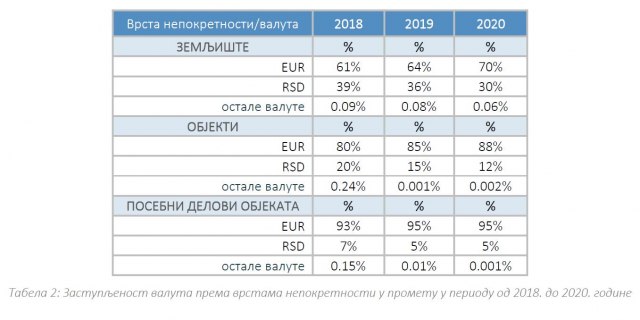 Između ostalog, kada je reč o zastupljenosti valuta u prometu nepokretnosti, dinari i evri su očekivano najčešći, dok ostale valute učestvuju u prometu sa samo 0,1 odsto.