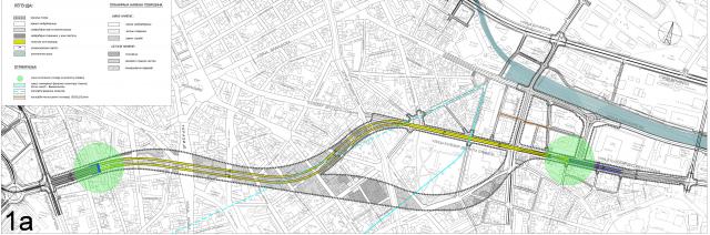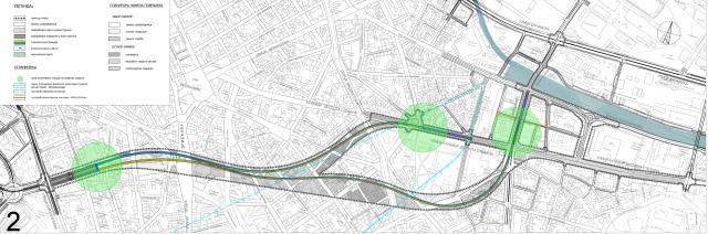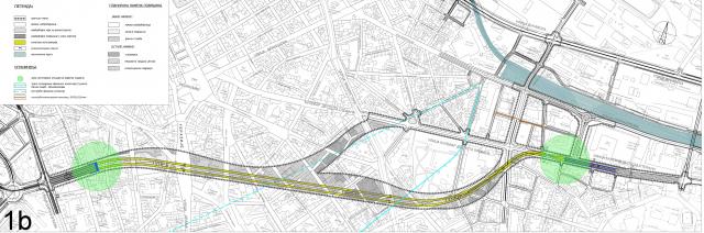 Projekat je zamišljen kao magistralna saobraćajnica između dva amfiteatra, odnosno veza zone velikih gradskih transformacija i alternativa tranzitnom saobraćaju za prolazak kroz uže gradsko jezgro. Na savskoj strani ulazno-izlazni portal nalazio bi se u nastavku Starog savskog mosta, u Kameničkoj ulici, a tunel bi se dalje kretao ispod Terazijskog grebena do zgrade MUP-a u Bulevaru despota Stefana. U zavisnosti od varijante dužina tunelskih cevi varira od 1400 do 2000 metara. Ponuđene su tri varijante sa razlikom u delu trase tunela, kao i poziciji izlazno-ulaznih portala na dunavskoj strani: