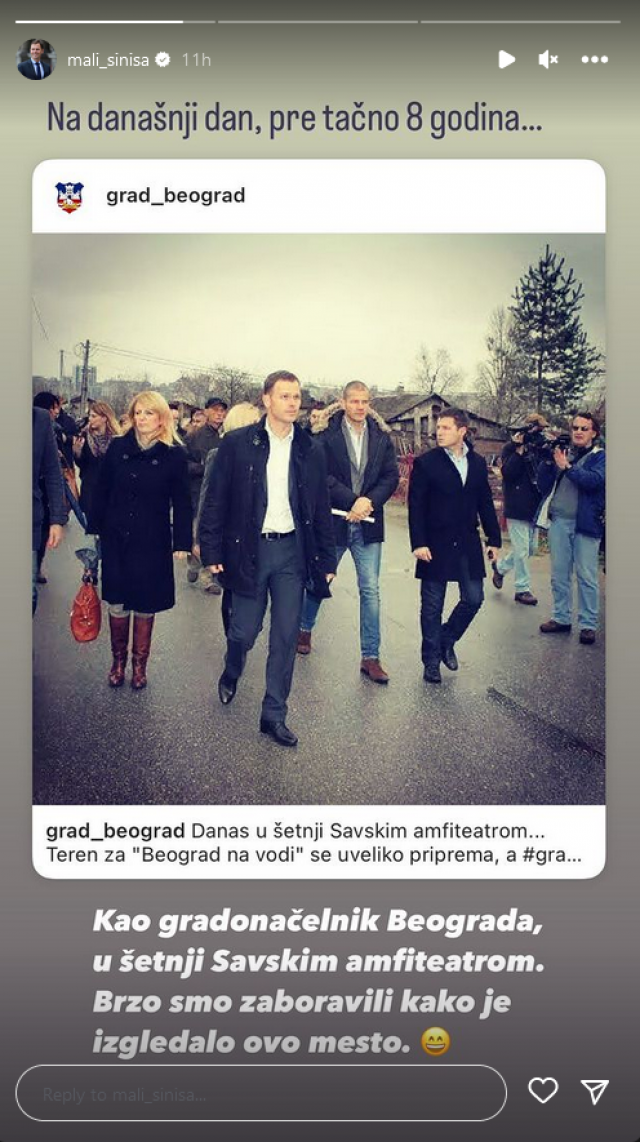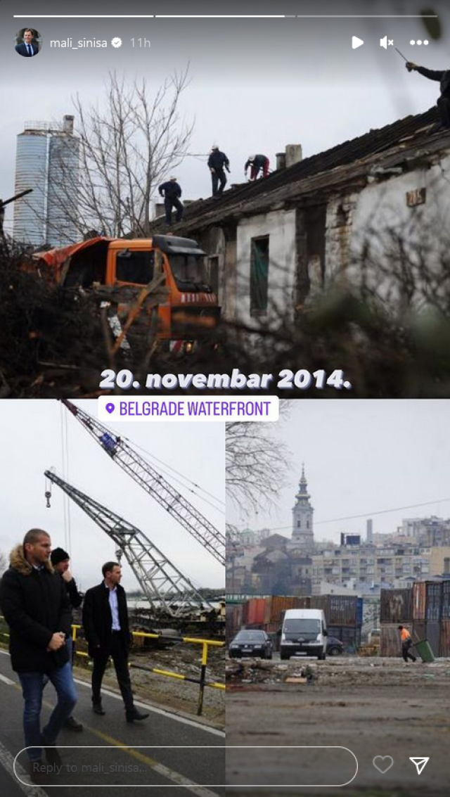 Na svom storiju je zatim podelio kolaž koji se sastoji od četiri slike koje prikazuju kako je projekat Beograd na vodi izgledao 20. novembra 2014. godine, kada je tek počeo da se gradi.