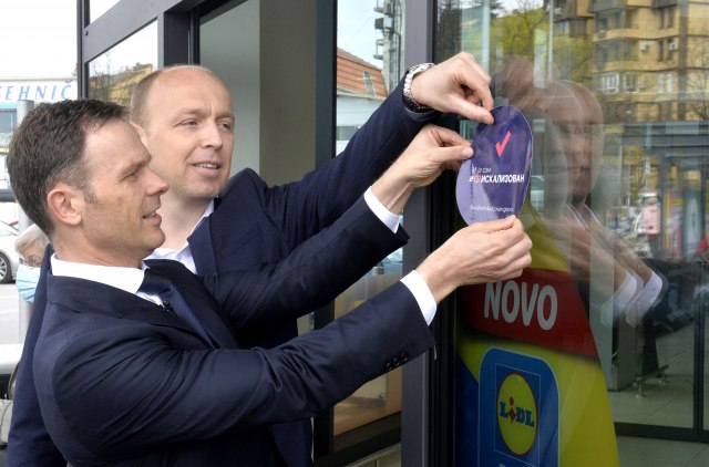 On je prodavnicu obišao u društvu direktorke Poreske uprave Republike Srbije Dragane Marković i generalnog direktora "Lidl Srbija" Dragana Čigoje. Ministar je tom prilikom kupio nekoliko proizvoda sa oznakom "Proizvedeno u Srbiji", a zatim su on i generalni direktor Lidla na vrata objekta zalepili nalepnicu "I ja sam e-fiskalizovan", saopštilo je Ministarstvo finansija.