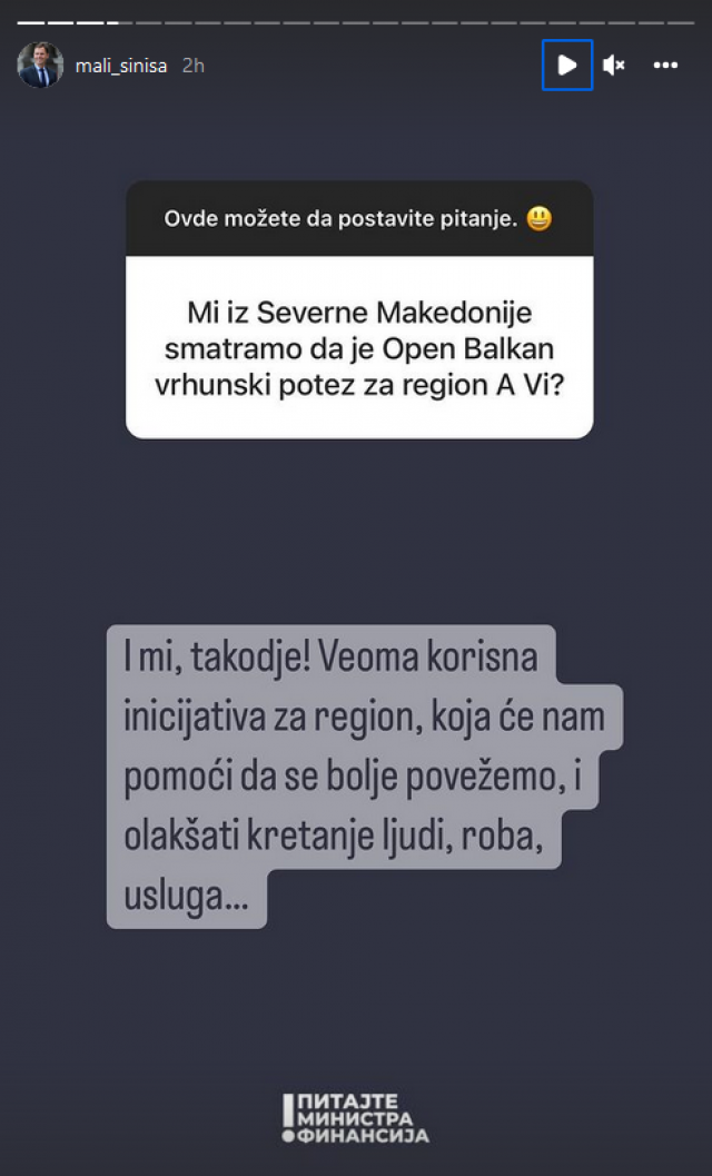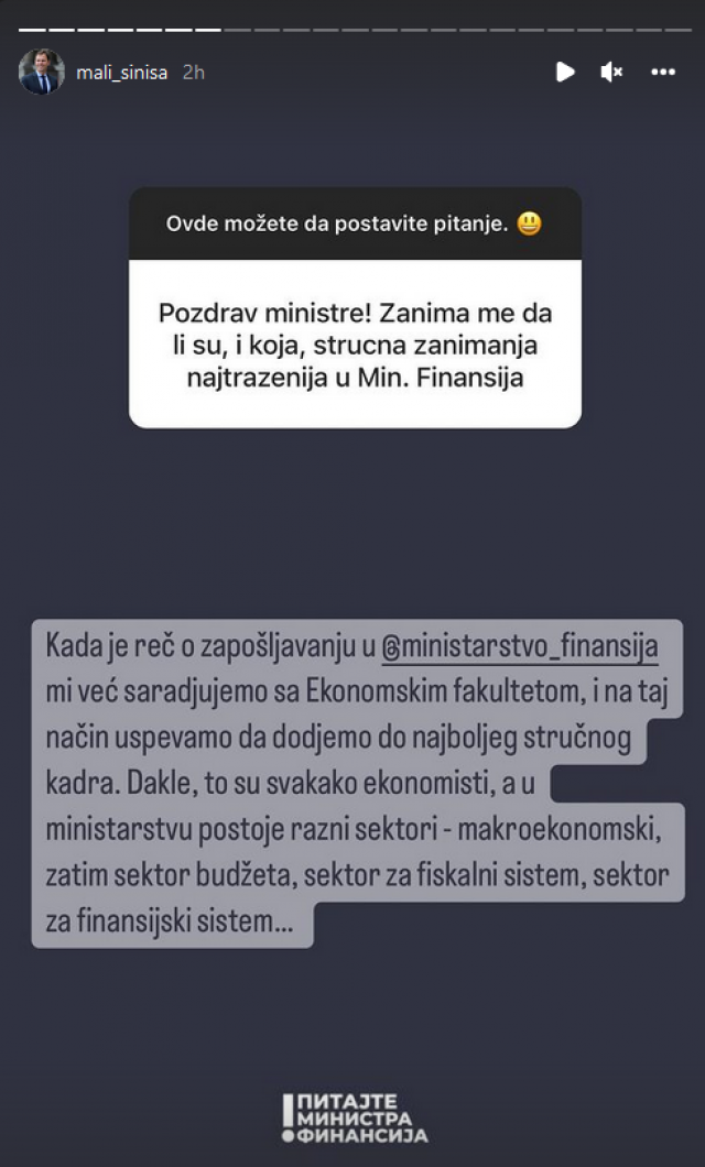 Neke od odgovora možete pročitati u nastavku, a svi odgovori su dostupni na Instagram profilu ministra finansija.