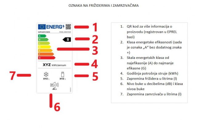 Kako se dodaje, osim oznake za energetsku klasu proizvoda, nove nalepnice na kućnim aparatima (registrovanim u EU bazi podataka) imaju i QR kod u gornjem desnom uglu, pomoću kojeg građani mogu saznati više informacija o proizvodu iz zvanične Evropske baze podataka o energetskim oznakama na proizvodima – EPREL. Proizvodi na našem tržištu moraju da zadovoljavaju zahteve za označavanjem koji su na snazi u Republici Srbiji, ali ne moraju nužno biti registrovani u EPREL bazi podataka.