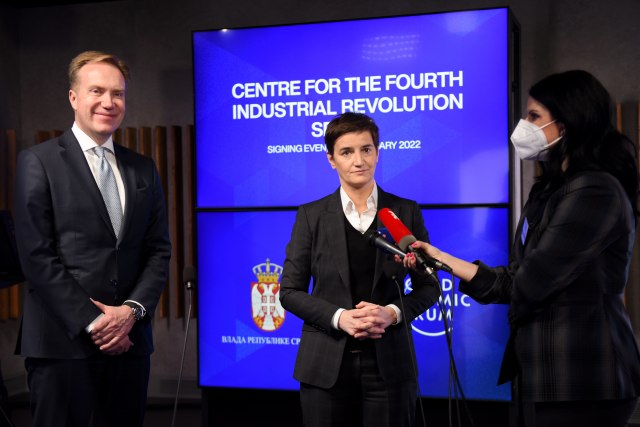 Nakon sastanka u sedištu WEF-a usledilo je potpisivanje Sporazuma o uspostavljanju Centra Svetskog ekonomskog foruma za četvrtu industrijsku revoluciju u Srbiji, a dokument je u ime Vlade Srbije potpisao direktor Kancelarije za IT i elektronsku upravu Mihailo Jovanović. "Ovo je nešto na čemu radimo već dugi niz godina, još 2018. godine smo potpisali Memorandum o razumevanju", kazala je premijerka Brnabić.