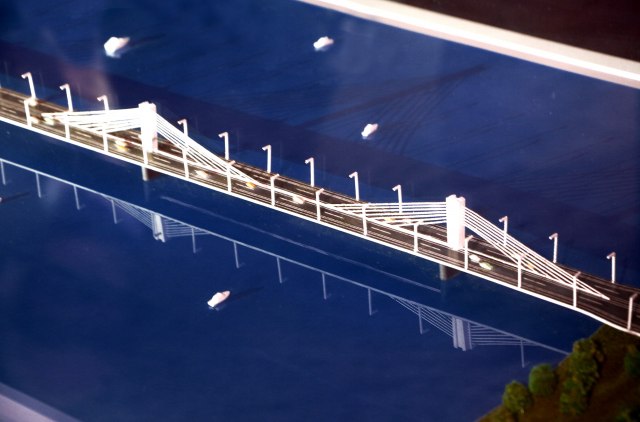 Maketa novog mosta preko Dunava u produžetku Bulevara Evrope koji će povezati Novi Sad sa obilaznicom u Sremskoj Kamenici predstavljena je sinoć javnosti.