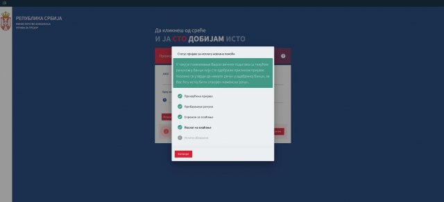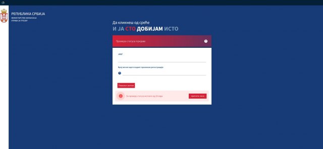 Na sajtu Uprave za trezor kliknite na polje "Provera statusa prijave"