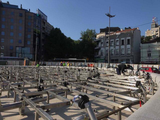 Gradski menadžer Goran Vesić, direktor Direkcije za građevinsko zemljište i izgradnju Beograda Branislav Popović i direktor „PMC inženjeringa” Nikola Vukanić obišli su radove na izgradnji fontane na Slaviji i uverili se da oni teku po planu.