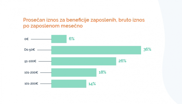 Među anketiranim kompanijama postoje i velike razlike u tome koliko se prosečno novca izdvaja po zaposlenom za te beneficije.