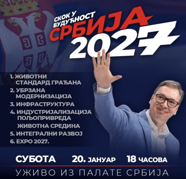 On će predstaviti planove za naredne godine i budućnost Srbije do kraja 2027. godine, a otkrio je da će pričati o: