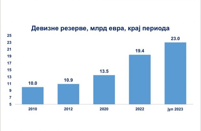 On je dodao da je broj vrtića u glavnom gradu povećan sa 276 koliko ih je bilo 2013. godine, na 731. Rekao je i da imamo 23 milijarde evra deviznih rezervi, kao i 38,5 tona zlata, te da one stalno rastu.