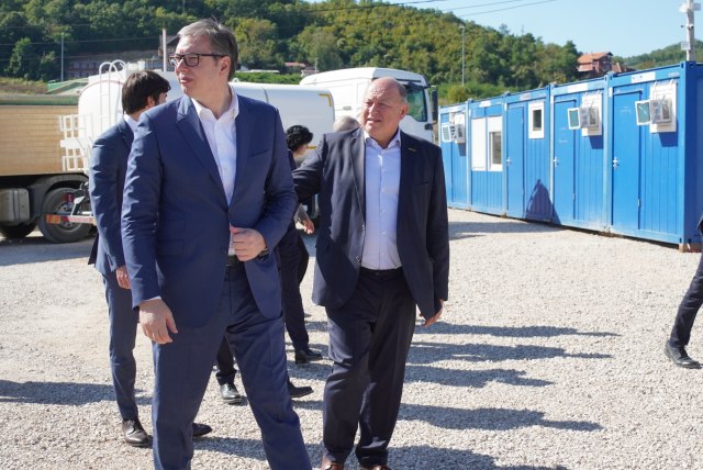 Vučić je odmah po dolasku na gradilište započeo sastanak sa predstavnicima Palfingera, a nakon sastanka započeo je obilazak radova.