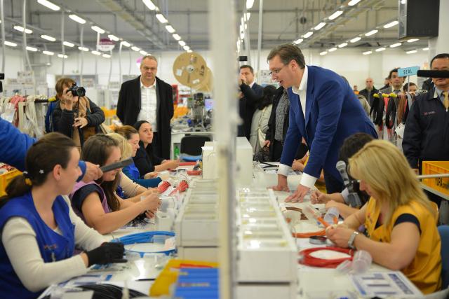 Predsednik Vlade Srbije Aleksandar Vučić obišao je fabriku "Jura" u Leskovcu, u kojoj je zaposleno 2.100 radnika i razgovarao s nekima od njih.