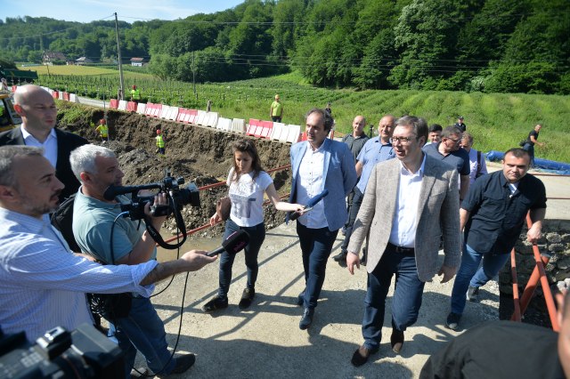 Aleksandar Vučić obišao je poplavljeno selo Banjevac i najavio da će za tri dana početi gradnja puta od Krupnja do manastira Bogoštica, dugog 4,7 kilometara.