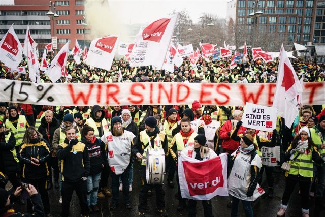 Dva velika sindikata EVG i Verdi bore se za veće plate radnika. Poslodavci ih zbog štrajka oštro kritikuju.