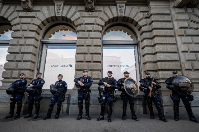 Policajci su samo posmatrali kako demonstranti drže govore protiv švajcarskog finansijskog sektora, preneo je Blumberg.