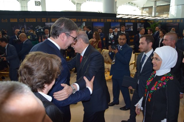 Predsednik Srbije Aleksandar Vučić prisustvovao je svečanom otvaranju novog aerodroma na poziv turskog predsednika Redžepa Tajipa Erdogana, sa kojim se i sastao pre ceremonije otvaranja.