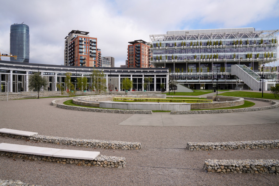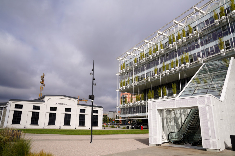 The outdoor area around the former turntable is part of a 10,000-square-meter open space designed for outdoor events — 30% of which will be covered in greenery. The fifth part of the complex is an underground garage with approximately 180 parking spaces.