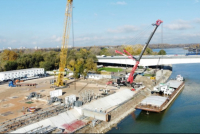 The barges departed three months ago from Jiangsu Province in China, from the CSCEC factory where the new bridge is being built. This shipment delivered more than 50 percent of the steel structure for the bridge, which will have a total weight of 6,500 tons.