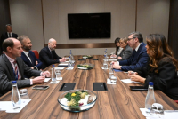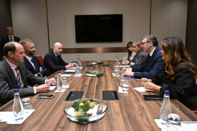 “A substantive discussion with GLOBSEC President Róbert Vass about the key security, geopolitical, and economic challenges facing our region. We exchanged views on the need to strengthen the resilience of states in Central and Southeastern Europe, enhance connectivity and integration within the European market economy, as well as on the importance of dialogue and partnership in a time of global turbulence,” Vučić wrote on Instagram.