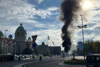 A shooting occurred on the plateau in front of the National Assembly, followed by a fire, Serbian media report.