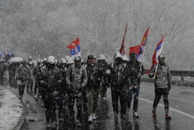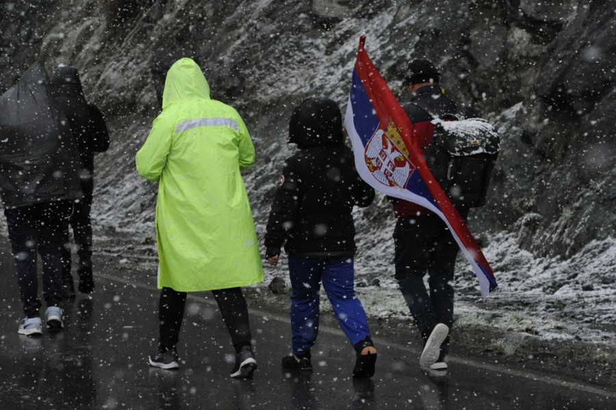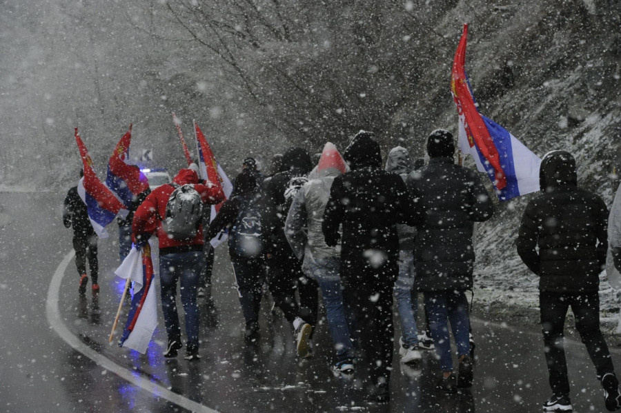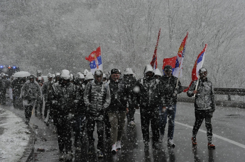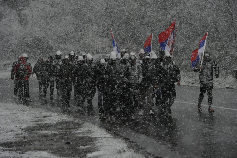 Around 200 Serbs from all parts of the AP of Kosovo and Metohija set off on foot towards Belgrade this morning. Despite the blizzard, the tireless participants did not give up on their mission - to attend a large public meeting in the capital, Belgrade, on April 12.